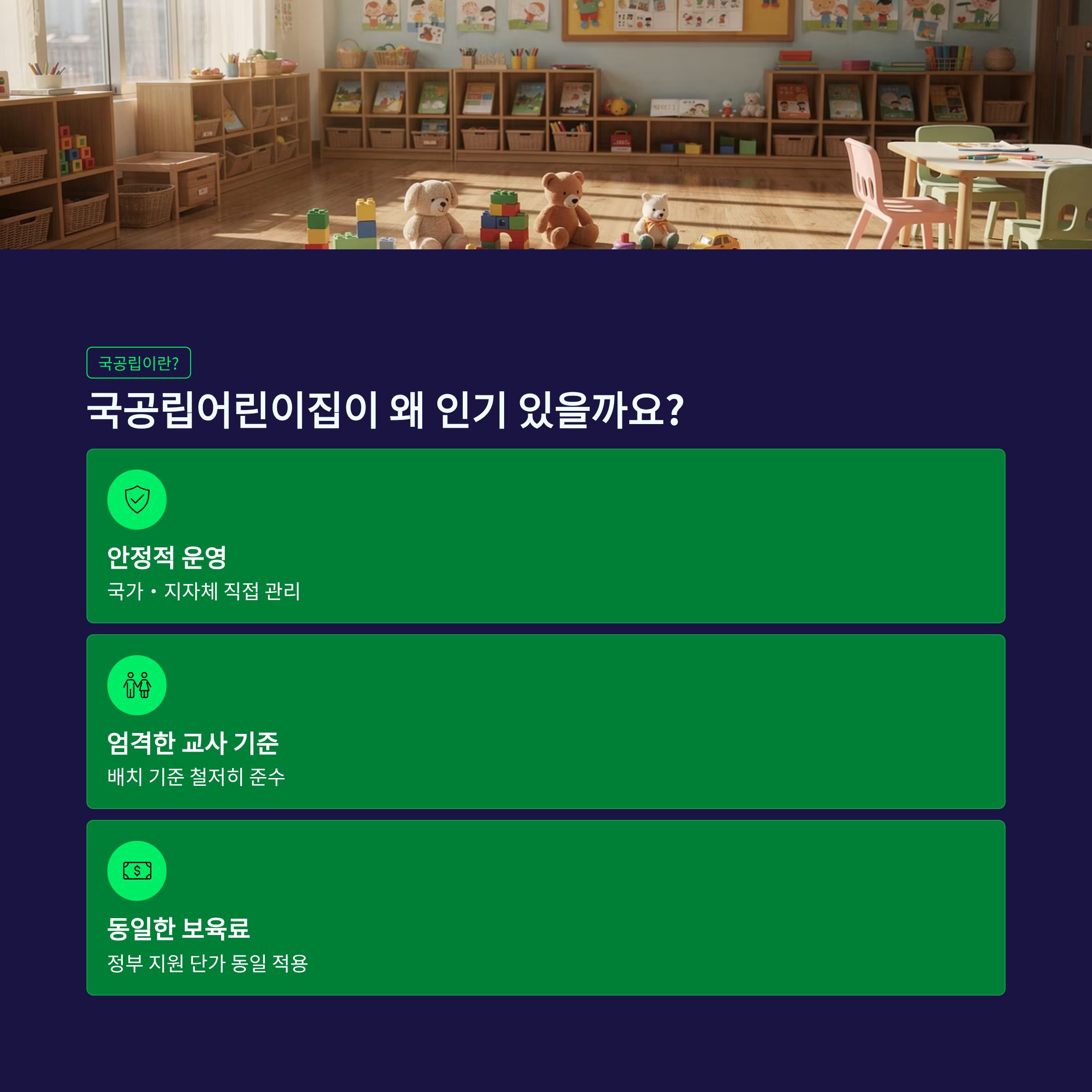 국공립어린이집은 국가 또는 지자체가 설치·운영하는 어린이집입니다.