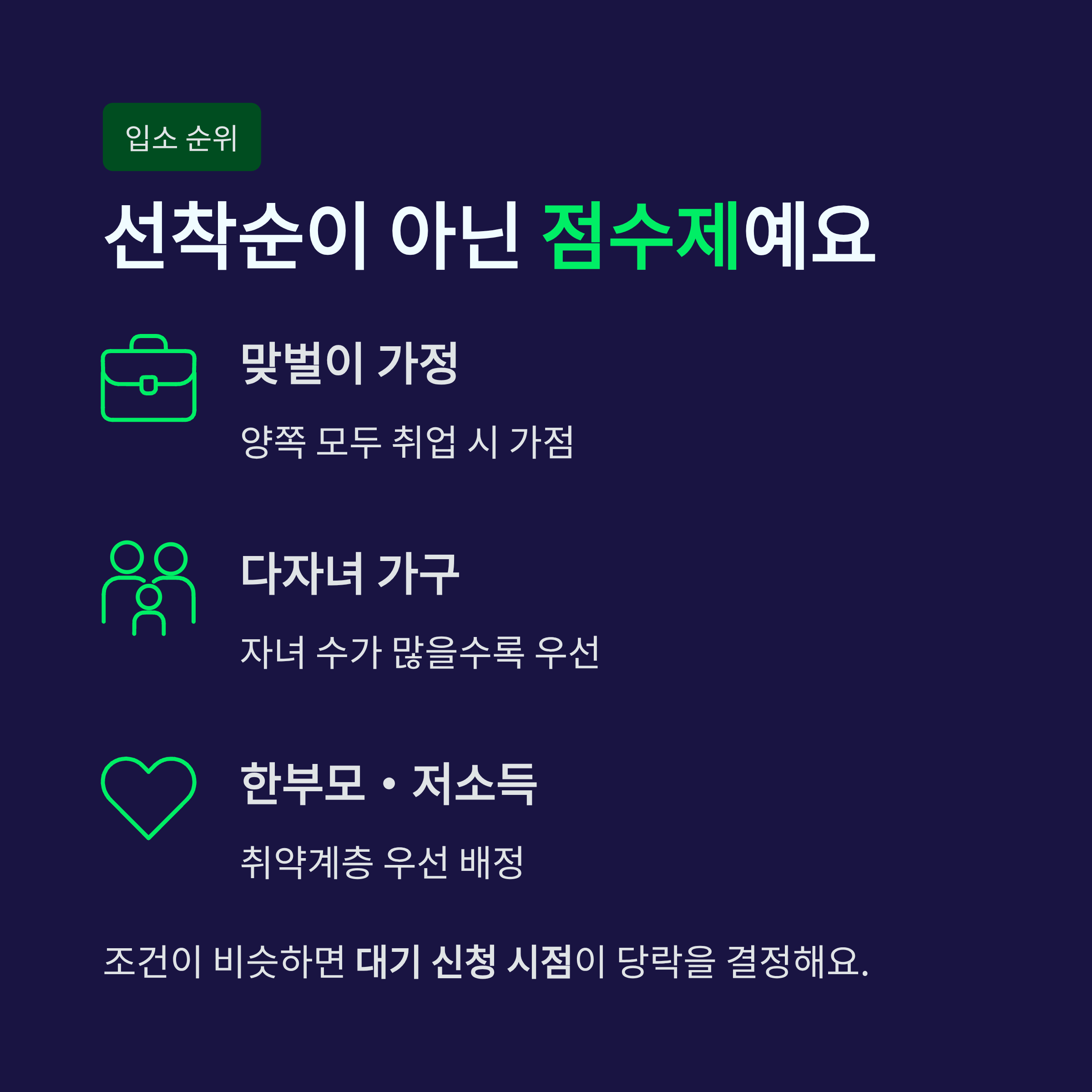 국공립어린이집은 ‘선착순’이 아니라 점수제 우선순위입니다.