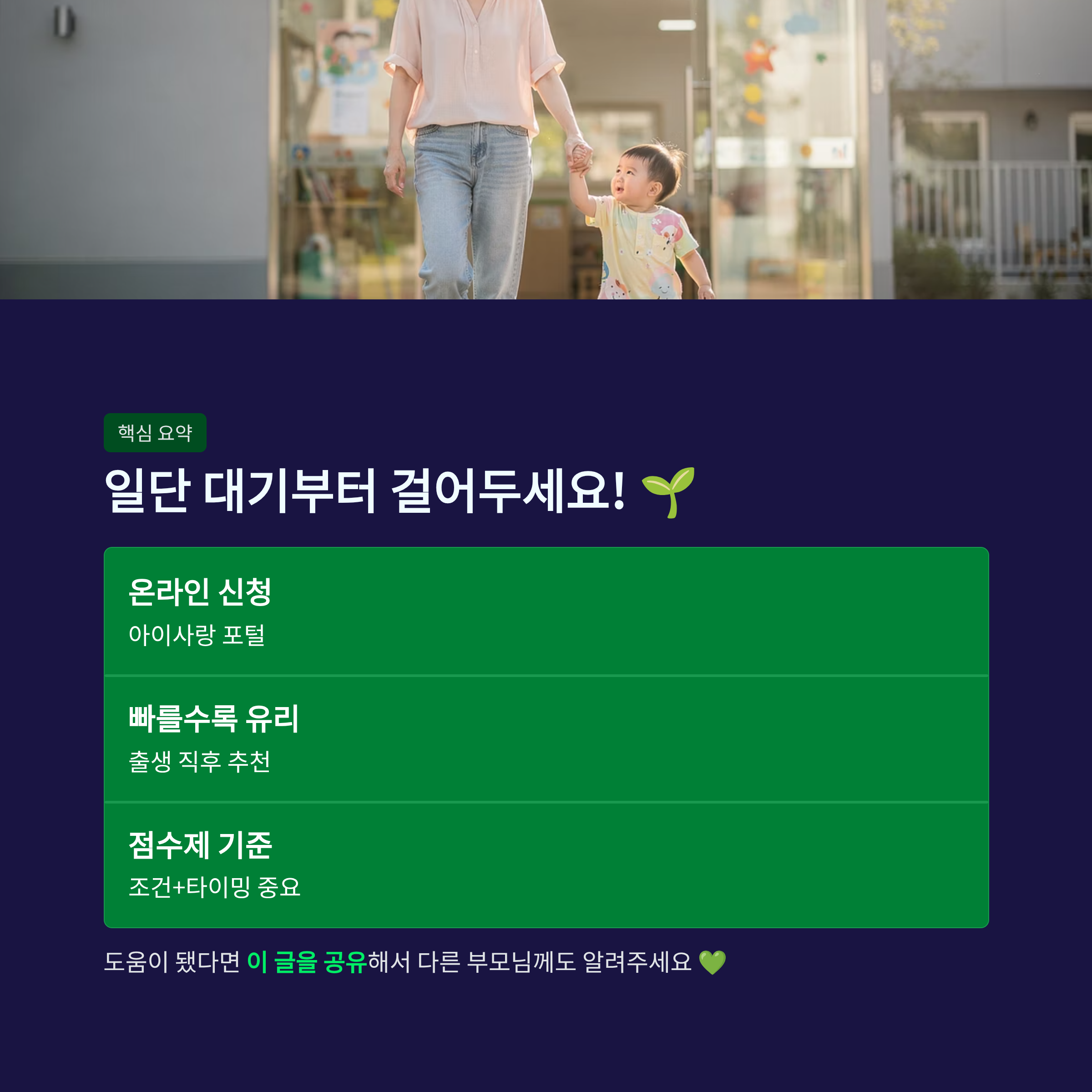 국공립어린이집은 정보 싸움이라기보다 ‘타이밍 + 조건’ 싸움에 가깝습니다.