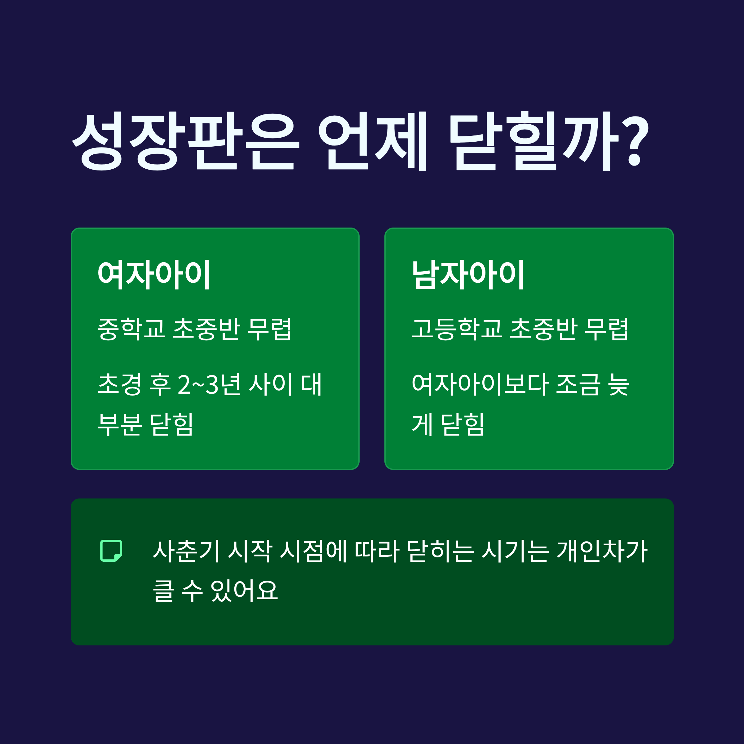 하지만 사춘기 시작 시점에 따라 닫히는 시기는 많이 달라질 수 있어요.