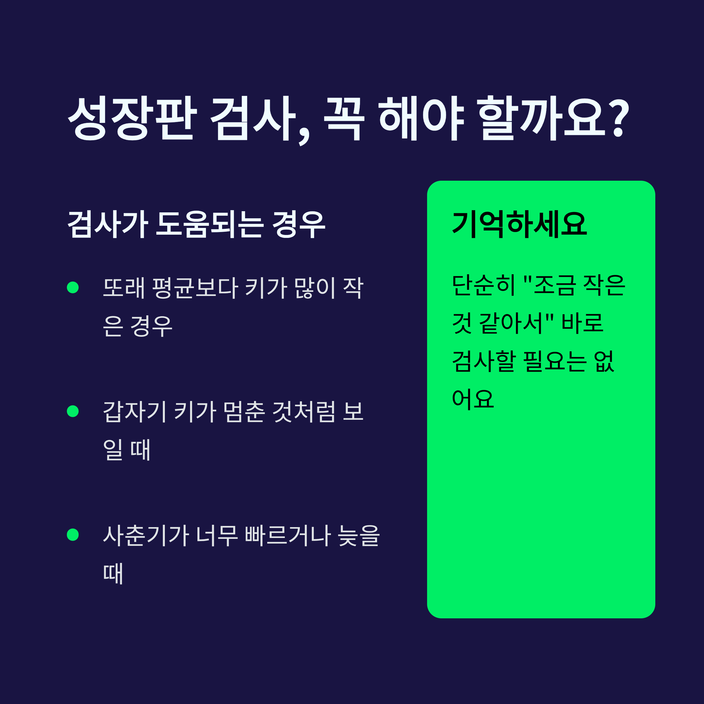 ✔ 무조건 검사보다 성장 속도 확인이 먼저