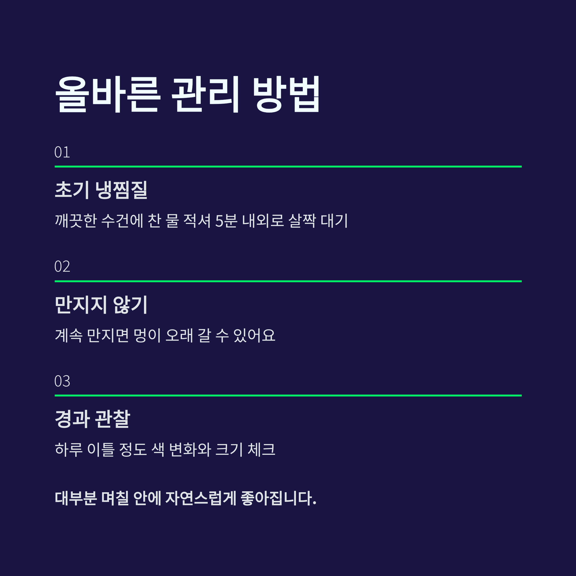 ✔ 초기엔 냉찜질, 이후 경과 관찰