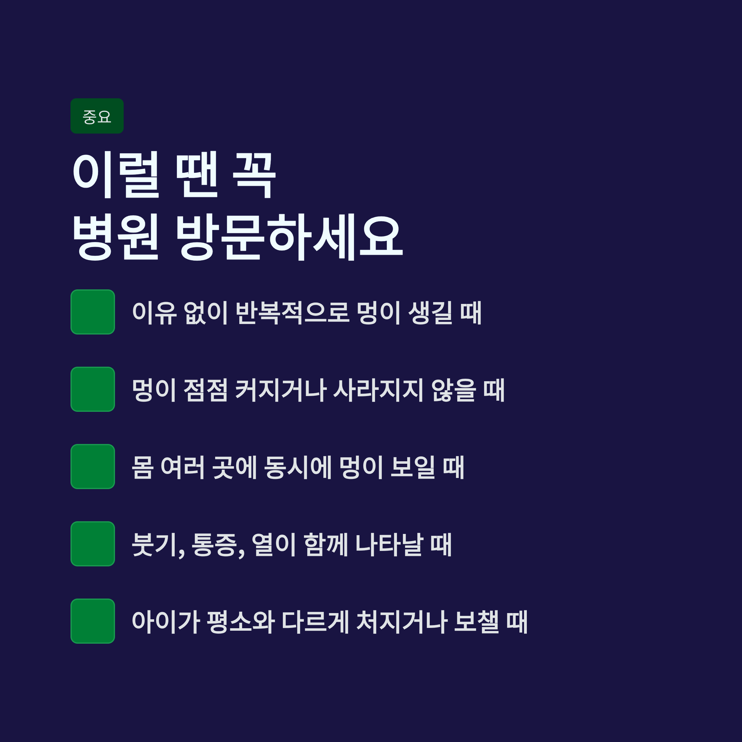 • 멍과 함께 붓기, 통증, 열이 동반될 때