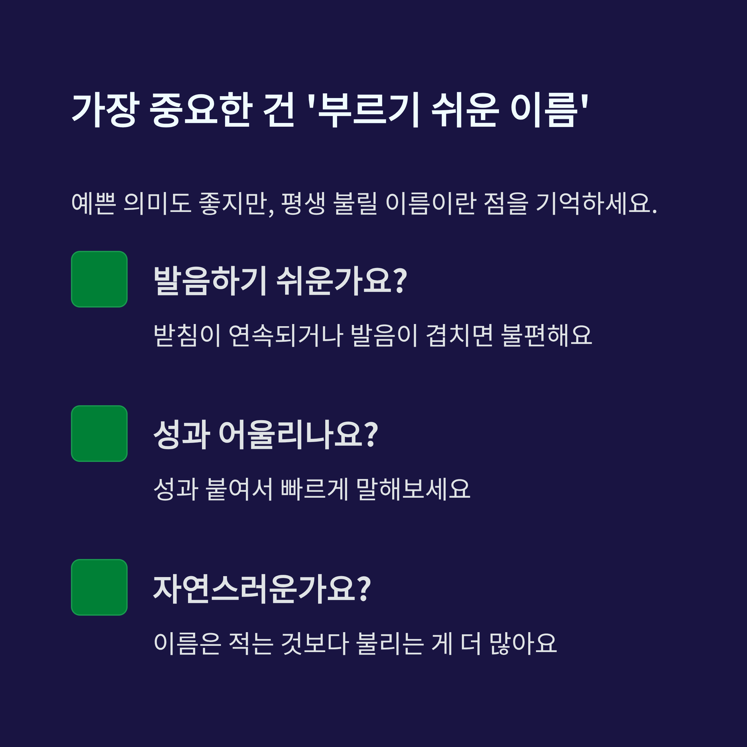 ✔ 부르기 쉬운 이름이 가장 중요
