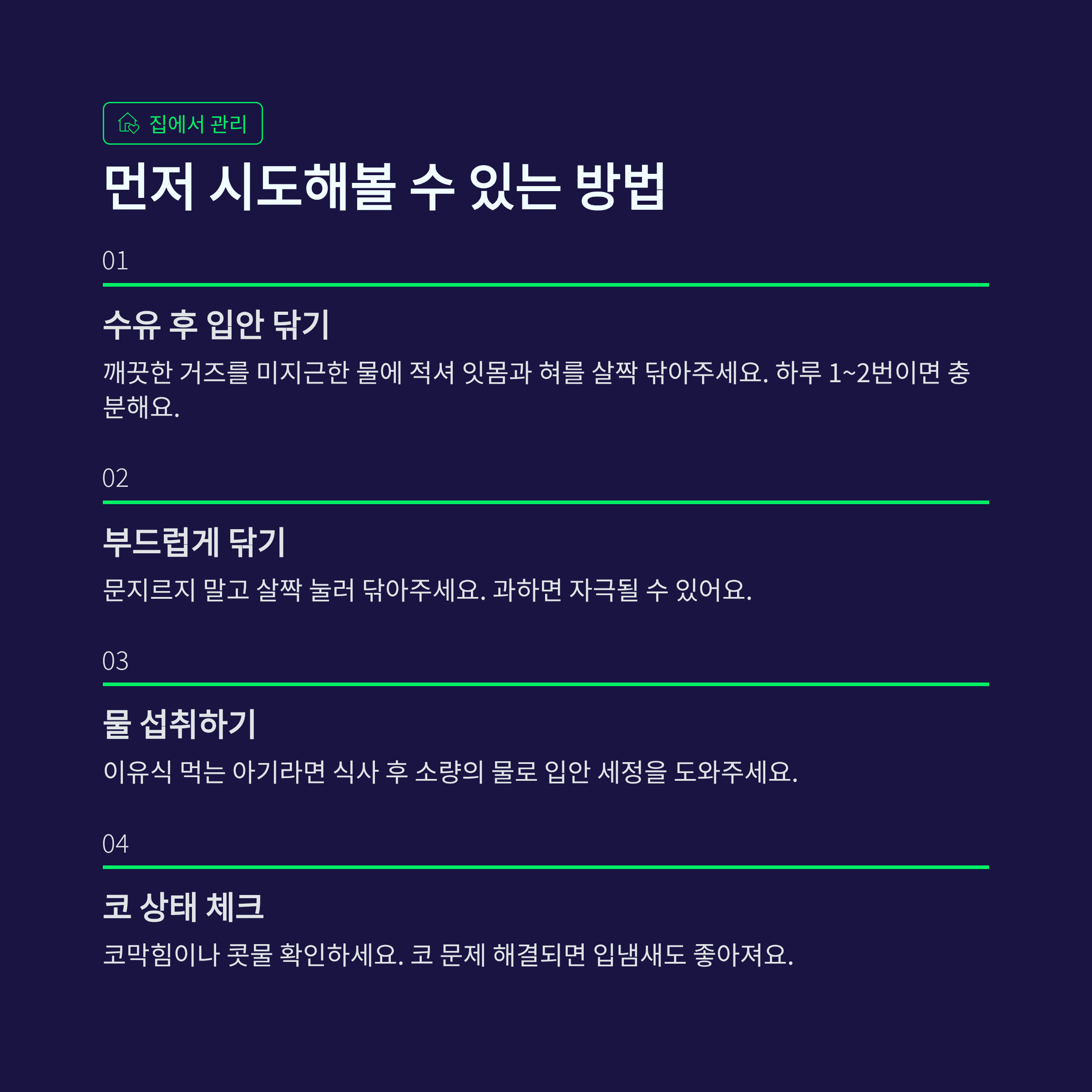 ✔ 수유 후 입안 닦아주기