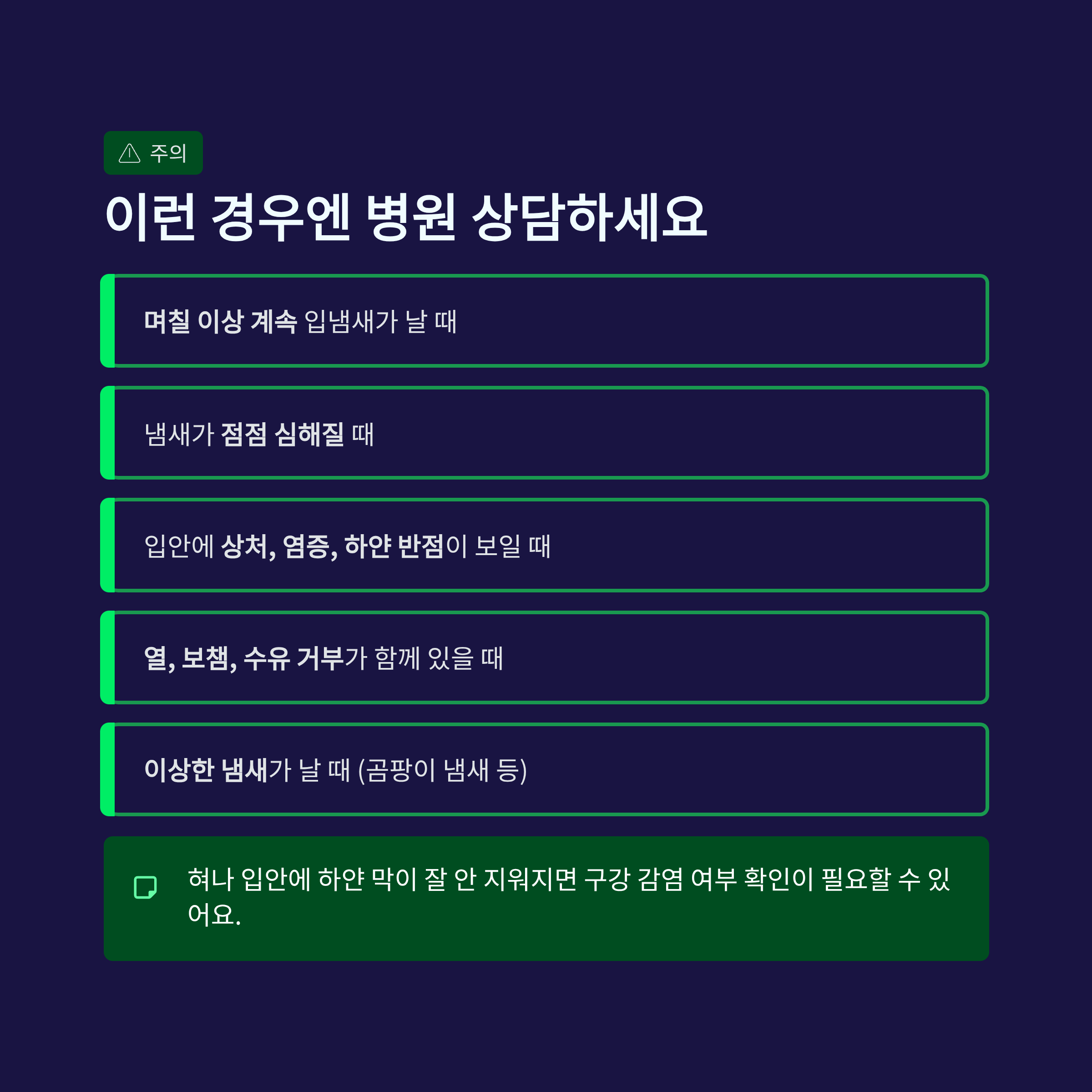 ✔ 지속되거나 이상하면 병원 상담 권장