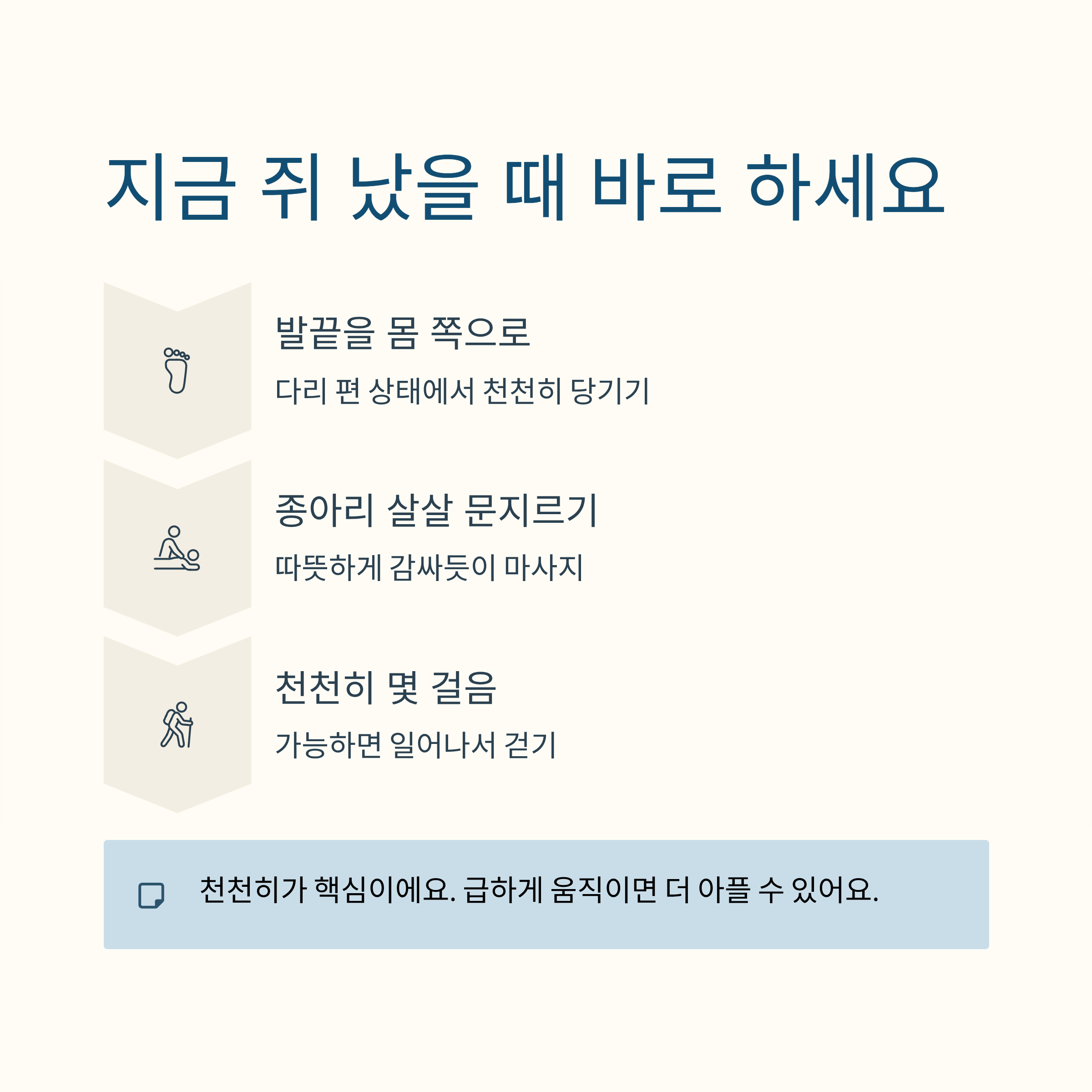 한밤중에 쥐 나면 당황해서 더 아파지기 쉬워요. 이렇게 해보세요.