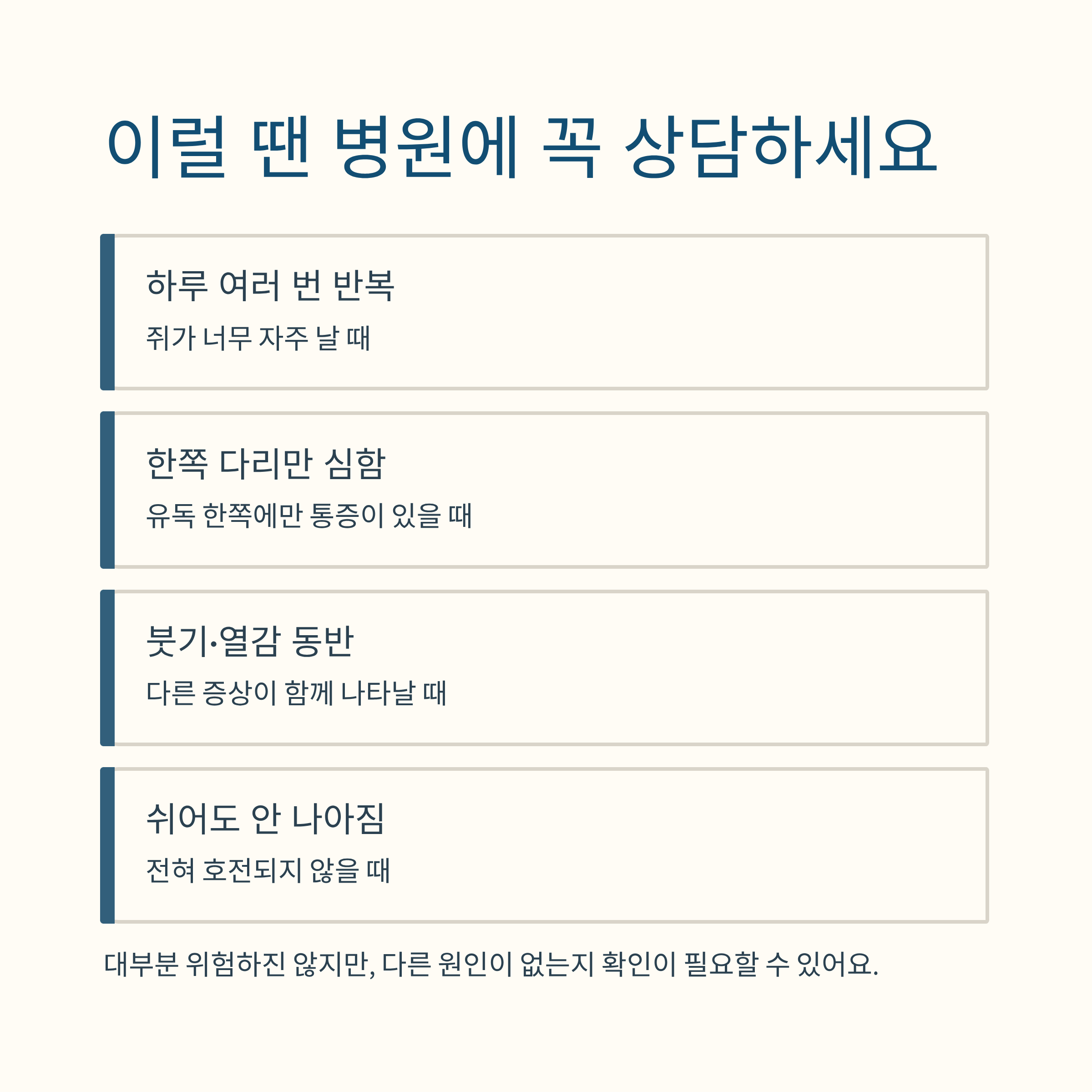 대부분의 임산부 다리 쥐는 위험한 증상은 아니지만, 아래 상황이면 한 번은 꼭 상담해보세요.
