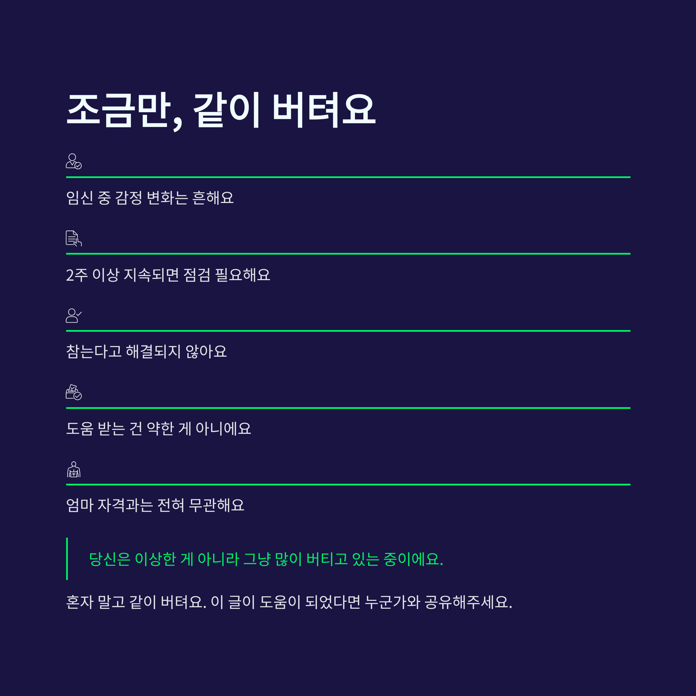 임신은 몸만 커지는 게 아니라 마음도 크게 흔들리는 시기예요.